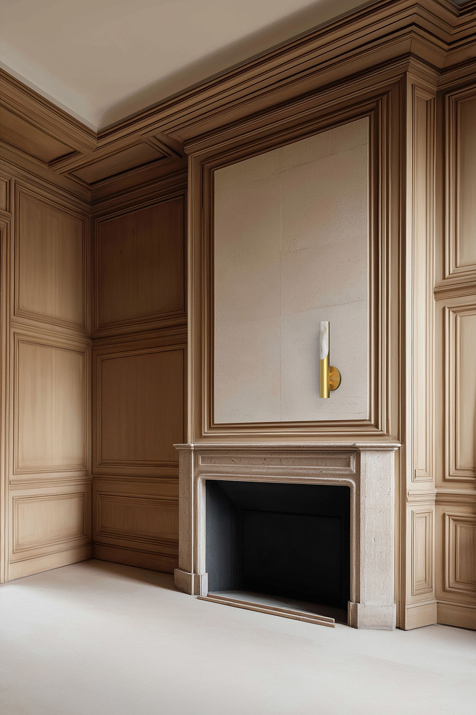 Thoughtful monolithic brass billets reveal a delicate hand-carved alabaster arch skillfully turned using centuries-old stone carving techniques